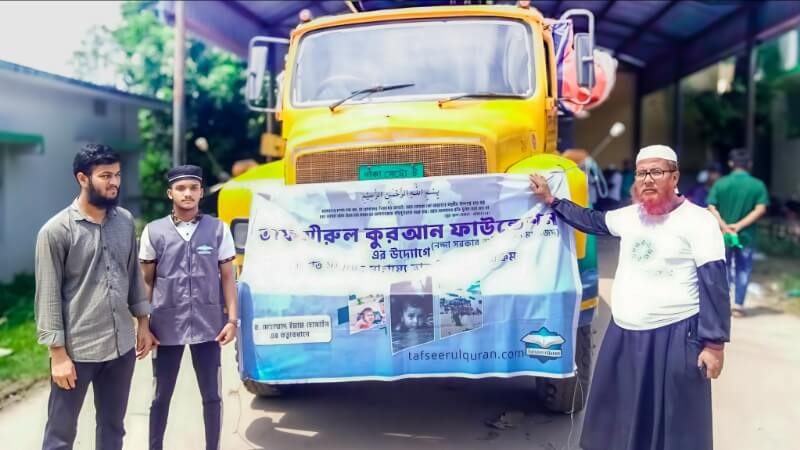 ত্রানবাহী ট্রাক নিয়ে তাফসীরুল কুরআন ফাউন্ডেশন সেচ্ছাসেবক টিম